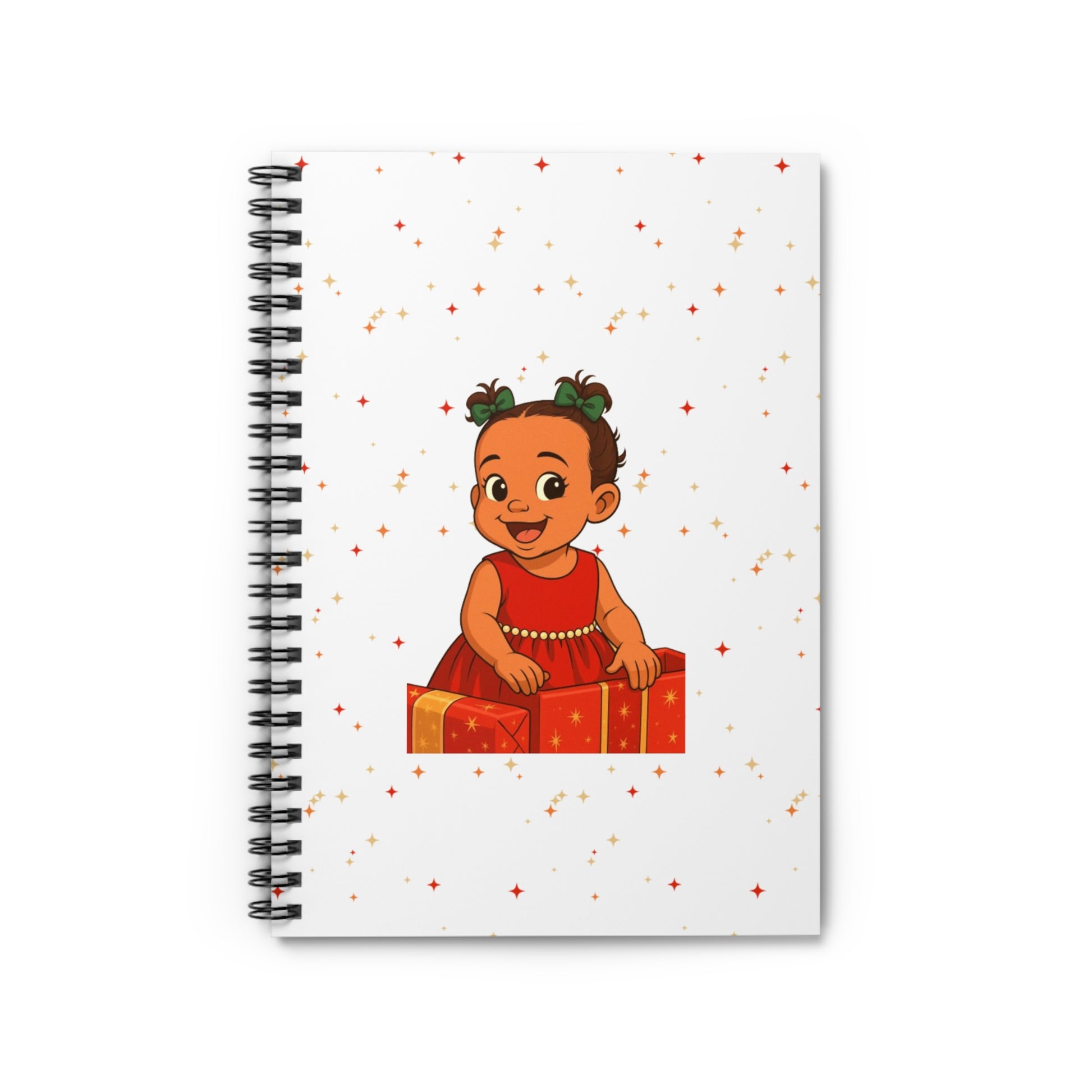 Baby Girl in a Gift Box Spiral Notebook — Cute Holiday Baby Journal, Ruled Lined Notebook