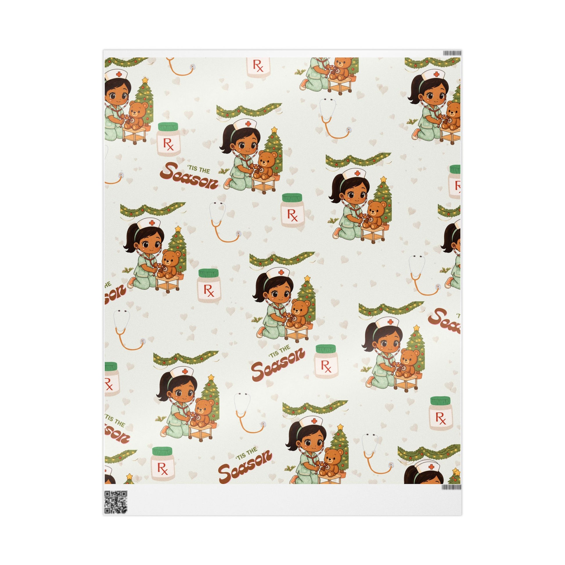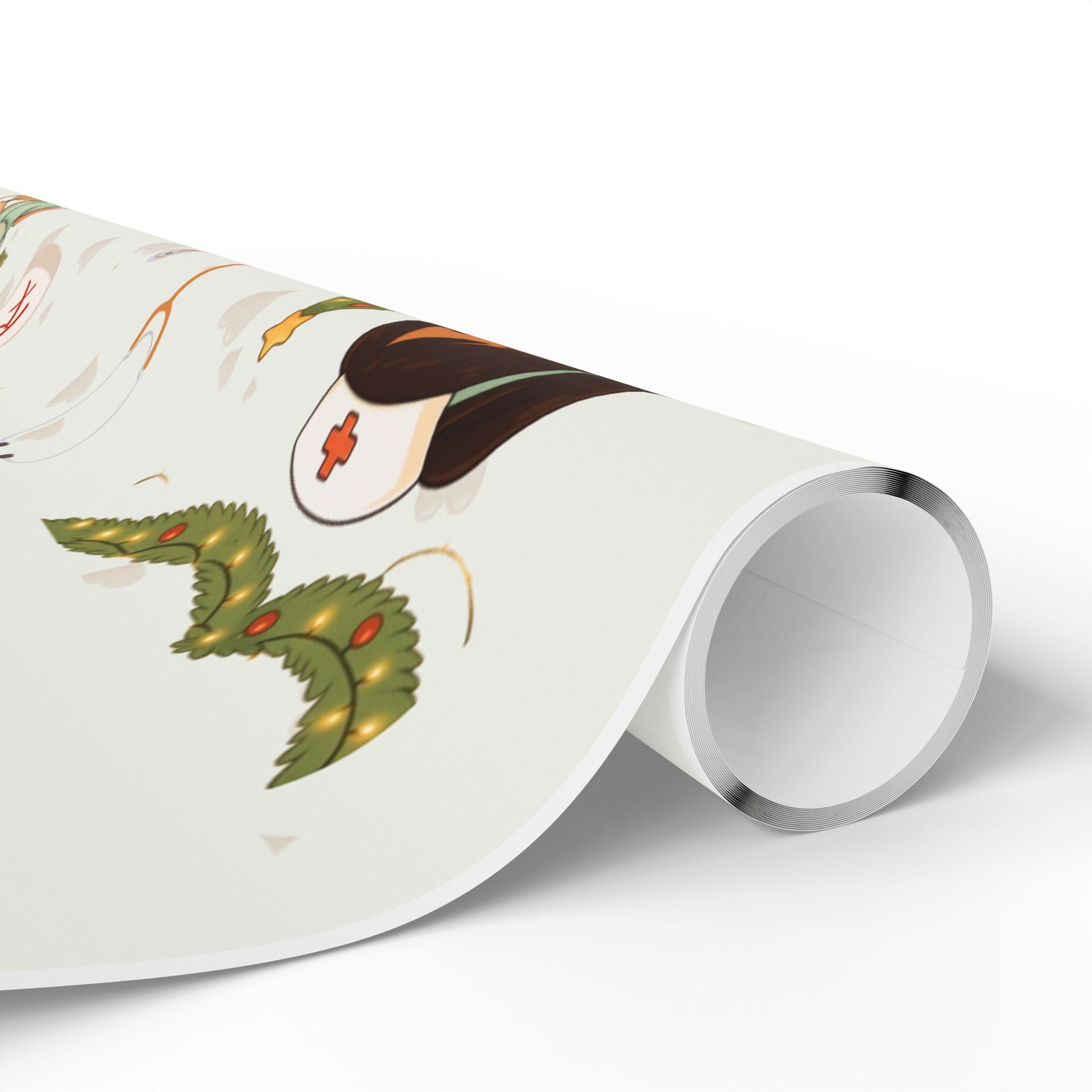 Girl Bear Nurse Kawaii Style Wrapping Paper | Medical Christmas Holiday Paper
