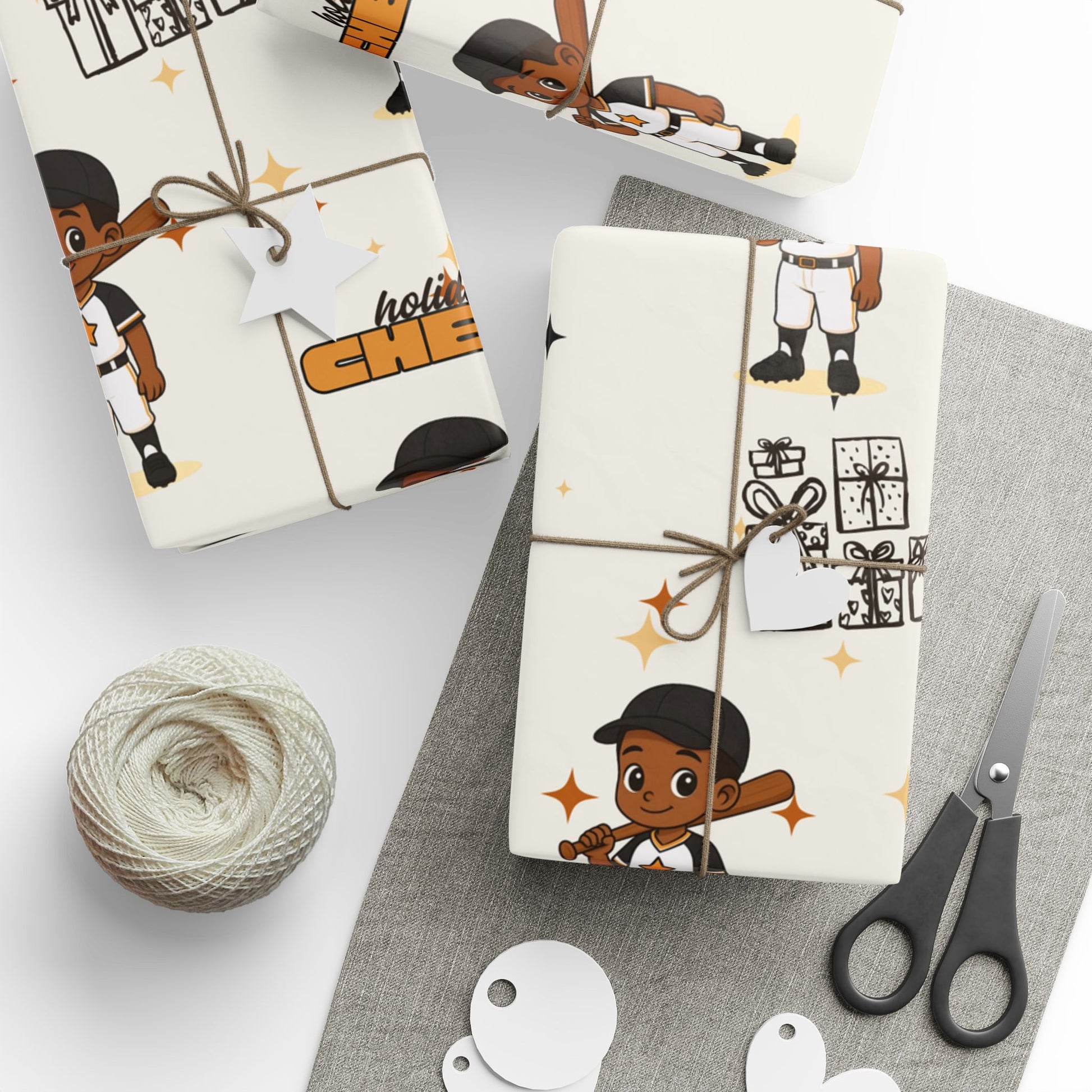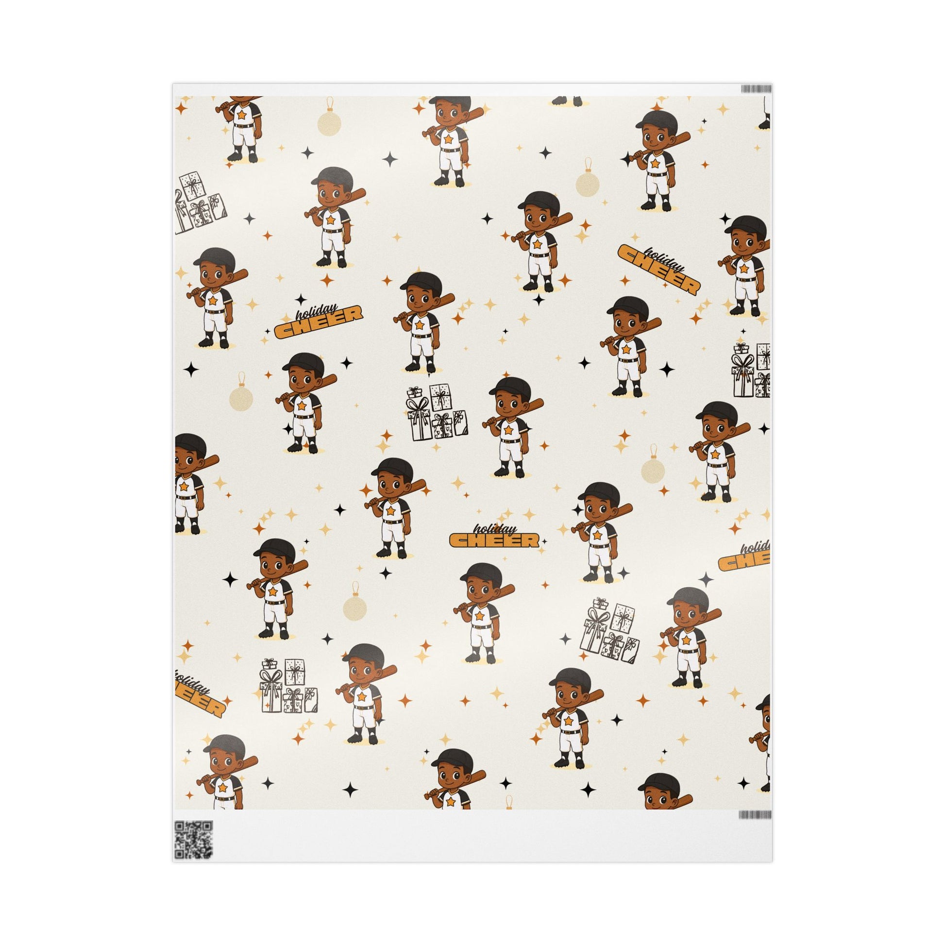 Celebrate the season with this charming Holiday All-Star Baseball wrapping paper! Featuring an adorable young athlete in his crisp white-and-gold uniform, this design brings sporty joy and festive sparkle to every gift. With his bat resting confidently on his shoulder and his warm smile ready for game day, he’s the perfect blend of holiday cheer and all-star energy.
