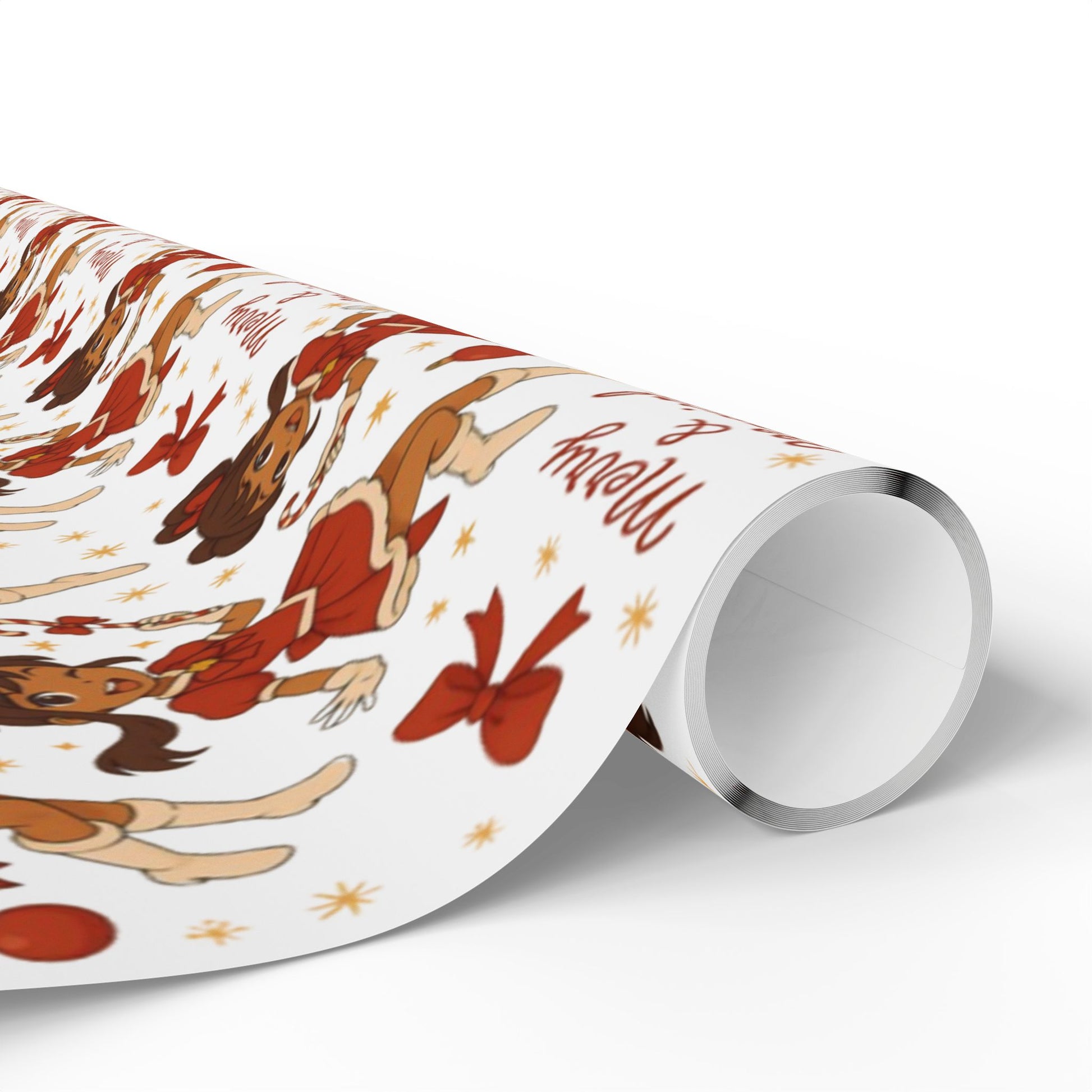 Make every gift feel extra enchanting with this “Merry & Magical” holiday wrapping paper, featuring an adorable cocoa-toned winter heroine in her festive transformation outfit. Styled in a whimsical red dress with sweet details and lively poses, she brings warm personality and feel good sparkle to every present. Let your creativity shine as you wrap your gifts with love!
